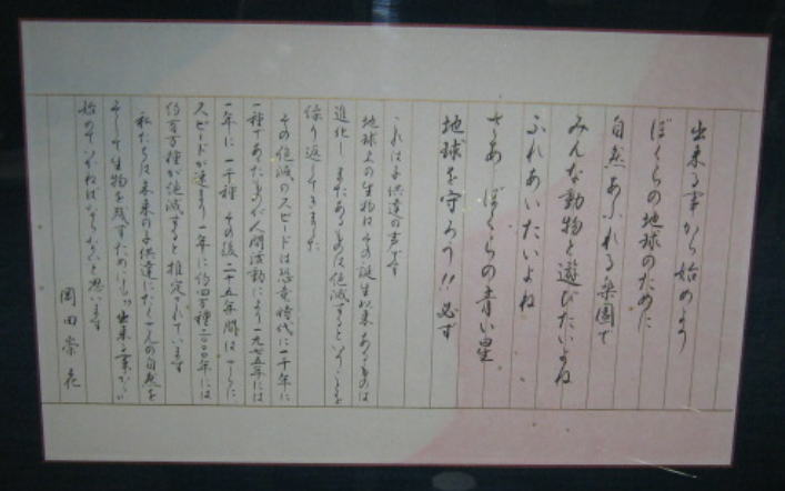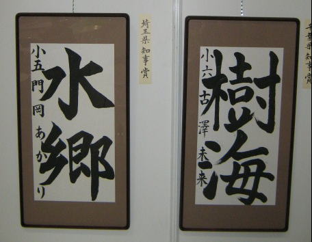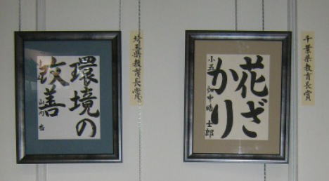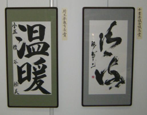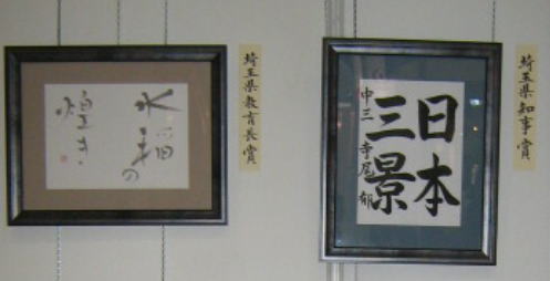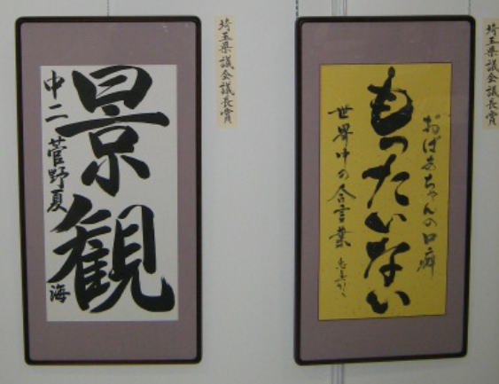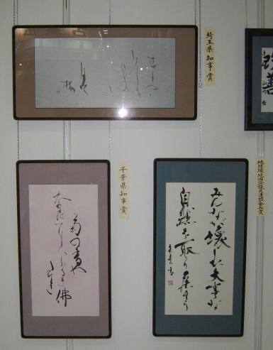 第4回日本藝術文化環境書道展の特別賞の 作品を展示しております。 千葉県・埼玉県知事賞、県議会議長賞・教育長賞、 地球環境国際議員連盟会長賞の作品です。